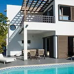 Situada a unos 1 km del Pueblo Marinero, Sea Views Modern Villa For Relaxing Holidays, ofrece una terraza con vistas a la piscina.